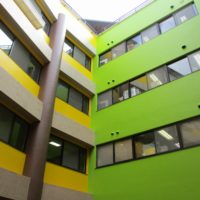 藤が尾にある豊年福祉会・天の川明星では昨年から外装のお色直しをしています。さて、こちらは中庭なのですが、このたび鮮やかな黄色と緑に生まれ変わりました。 もう春もそこまで来ています。この壁を観ながら、タンポポみたい!草原と …