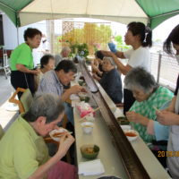 梅雨入りもそろそろでしょうか。心配していた雨も降ることなく、青空がみえています。6月21日軽費老人ホームの屋上で毎年恒例の流しそうめんが開催されました。涼しい風、風鈴の音、簾や夏のお花飾りが初夏を感じさせてくれます。 屋 …