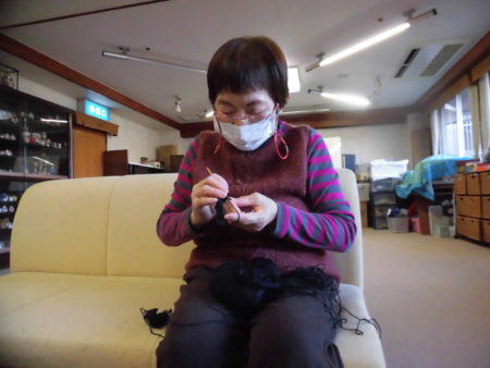 素敵だなーと、ボランティアの丸山さんが「編み物先生」をして