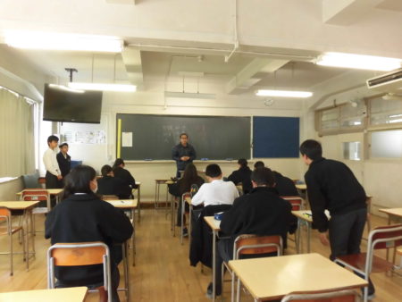 1月24日、交野第一中学校に「職業講話」に行きました。昨年までは小学生だった-というあどけなさも残る1学年のみなさんに、福祉とは、介護の仕事とは-のお話しをしました。講師は特別養護老人ホーム明星施設長・中川寛です。「福祉という言葉を聞いて、何を思いますか?」という質問が投げかけられました。