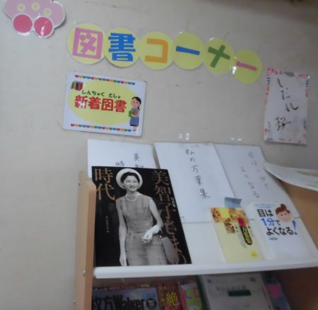 デイサービスセンター天の川ライブラリーでは新着図書として、時の話題である万葉集(新元号・令和の由来となった文典)と皇后陛下美智子さまの写真集を取り揃えています。新着図書は定期的に入れ替わり、スタッフが持ち寄った旅の雑誌もあります!フリータイムにご自由にお読みいただいています。