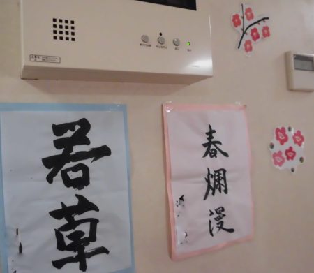 書道の時間に書かれた作品も春色です。不思議と字が色を連想させます。