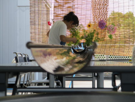 梅雨入りもそろそろでしょうか。心配していた雨も降ることなく、青空がみえています。6月21日軽費老人ホームの屋上で毎年恒例の流しそうめんが開催されました。涼しい風、風鈴の音、簾や夏のお花飾りが初夏を感じさせてくれます。