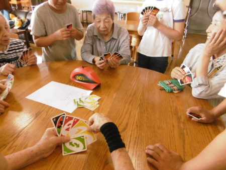 『uno』は初めてチャレンジ!という方も多く!でも児童さん達が丁寧に教えてくれました。ボタンを押したらカードが飛び出てくるアタックマシンも登場です。一度に飛び出てきてエキサイティングです。
