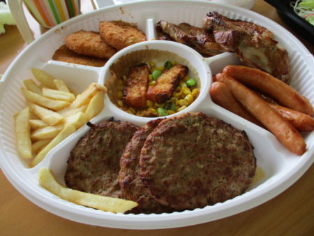 ハンバーグ、コロッケ、照り焼きチキン、ウィンナー、フライドポテト、、なんだか夏バテ解消にピッタリの元気が出そうなお食事です!