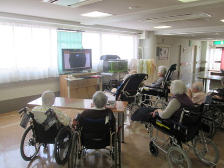 お食事が終わってひと息いれた後は、アニメ-ション鑑賞タイムです♪お仲間も「たまにゃ、こういうのもいいわね~~♪」と身を乗り出して観ておられます。