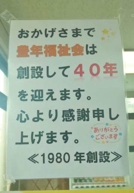 豊年福祉会は1980年に大阪府交野市星田の地に誕生しました。おかげさまで来る2020年は40周年となります。記念になるようなことをささやかに企画していますので、報告をさせていただきます。