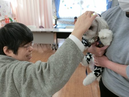 「らぐちゃん、みなさんに会うので昨日ちゃんとお風呂に入ってきました!」良い匂いがしますもんね。犬が好きな人は犬を見るとなでたい、と思うものです。なでる側の人間にしあわせホルモンと呼ばれるオキトシンという物質が分泌されるとか。ストレスが減ったり心拍数が低くなったりする―という説があります。