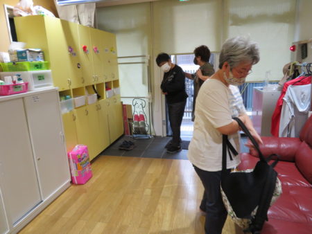 夕食の準備が進む中、ご利用者様は入浴をされます。もう一人のスタッフにより血圧、体温、脈拍の測定を―。「しんどいところないですか?」異常を見逃さないようにしっかりと顔色や表情も観るようにしています。