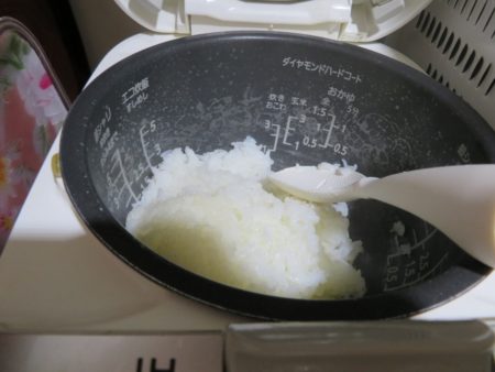 ブーブーとお知らせチャイムが!ご飯がふっくら炊けました。ごはんの上には『ゆかり』を乗せます。