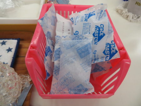 保冷剤も酷暑の日々には救世主的存在!首元を冷やすことで、脳へ流れる血液を効果的に冷やす、、、などと読んだことがあります。首のタオルの下に忍ばせて使うので小さめのものが活躍します。