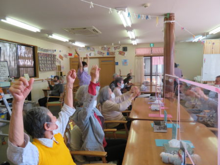 本日もがんばりました!楽しかったあ~!肩を回して手を挙げて、また、明日もお元気で!