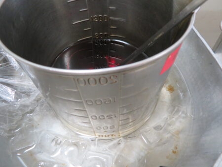 職員は12時一斉に昼ごはん!というわけにはいきません。食べる時間が一人々異なります。普段ならば冷めてしまうこともありますが、麺類の時には冷たいものは冷たく温かいものは温かく食べて欲しい、という栄養課の想いがありますので、汁を別にしてあります。冷麺、そば、そうめんの時には汁を氷水で冷やしています。