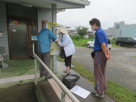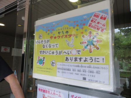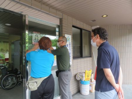 「ザ☆クイズラリー」は、7月21日からスタートしています。その数日前に豊年福祉会のコミュニティソーシャルワーカーでクイズの設営に各拠点を周りました。こちらは私市2丁目にある『ハートフルステーションいわふね』に設営している様子です。