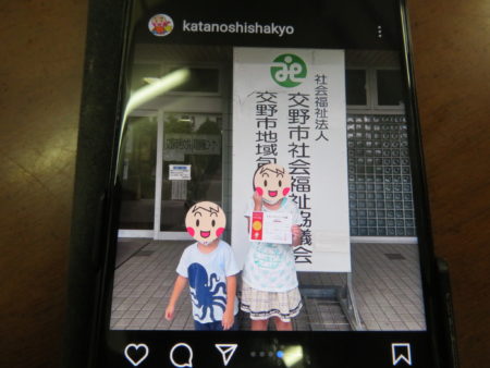 こちらからは交野市社会福祉協議会さんのインスタグラムの模様です。交野市社会福祉協議会さんが市内の施設を巡る子どもさんの様子をご報告してくださいました。こちらはお兄ちゃんと弟クンでしょうか?「あ!あれが天の川明星の看板だ!!」「行ってみよう!」