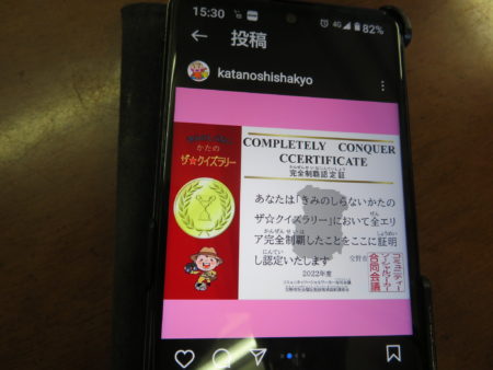 コンプリートした方への『完全制覇認定証』は、社会福祉法人もくせい会のコミュニティソーシャルワーカーIさんの手作りなのです。深紅に金色のメダルが輝いています。Iさん、ありがとうございます!