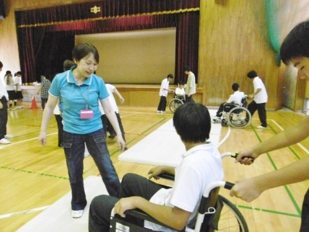 交野第一中学校は人権教育の一環として障がい者理解学習が行われています。