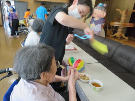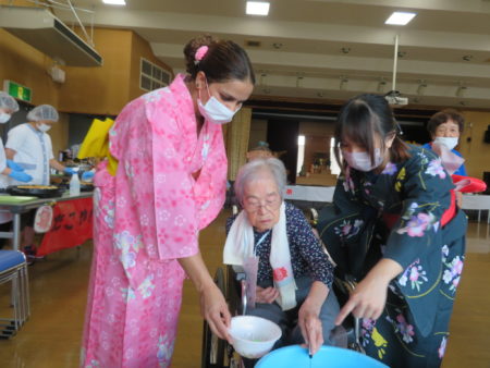 お盆が過ぎたというのに、猛暑の日が続きます。特別養護老人ホーム明星では「暑さを乗り越えよう!」とばかりに夏祭りが開催されました。