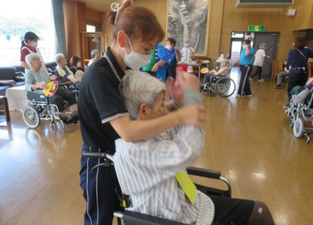 ゲームはご入居者様に達成感を味わっていただきたいーことを基本に考えました。お身体の動きに制限がある方も、自由に動くことができる方も、それぞれに楽しんでいただけるように、、、、とスタッフは思いを込めました。