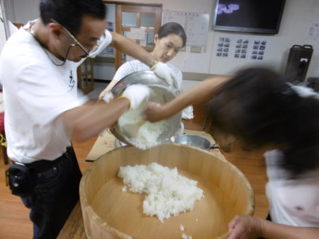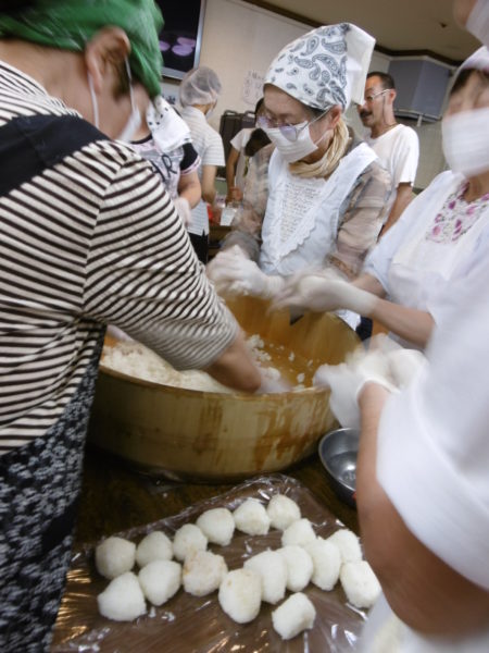 軽費老人ホームのご入居者様7名でおにぎりを作られました。早い!早い!!