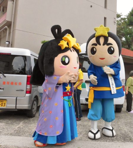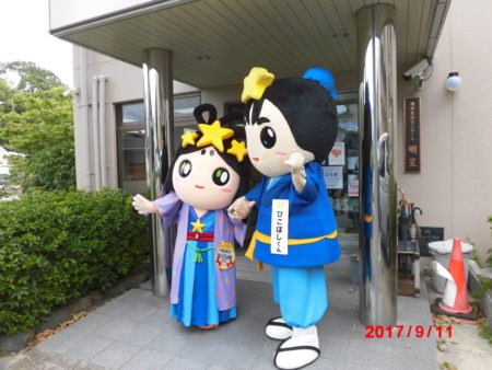 9月11日(月)、交野市ゆるキャラおりひめちゃんとひこぼしくんが